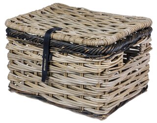 Basil Dijon L, luxe rotan fietsmand, deksel met sluiting, excl. bevestigingsmateriaal, grijs/zwart